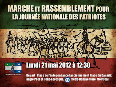 Marche suivie d'un spectacle théâtral et musical pour la Journée nationale des Patriotes avec, entre autres, Loco Locass, Alexandre Belliard, Céline Faucher et plusieurs autres. Des orateurs connus incarneront tout au long du spectacle les grands patriotes de l'histoire du Québec. La mise en scène sera assurée par le comédien Denis Trudel.